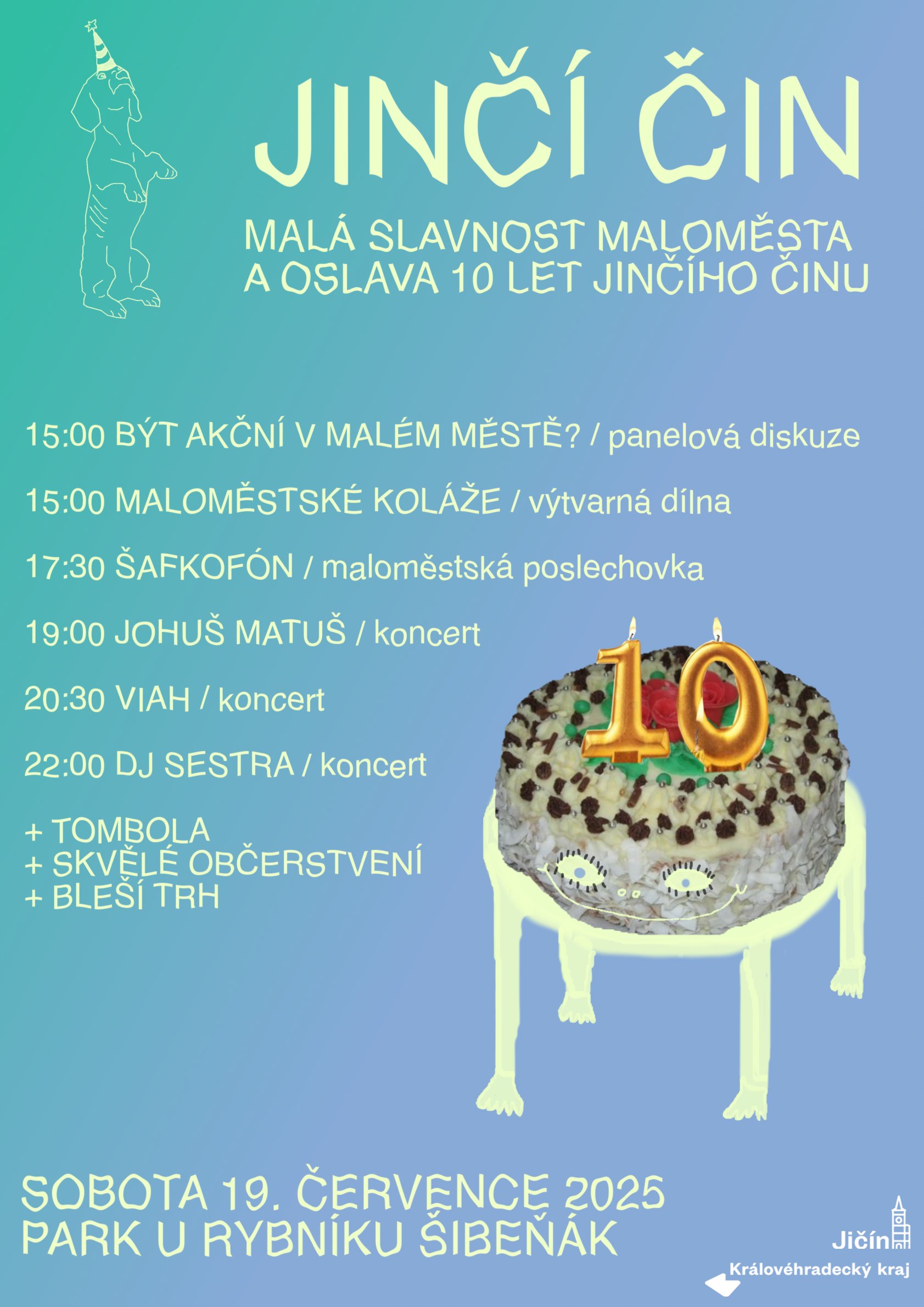 V sobotu 19. července společně oslavíme deset let existence Jinčího činu - symbolicky se vrátíme na jedno z nejhezčích míst, kde festival probíhal, a připomeneme si některé z nejlepších koncertů!