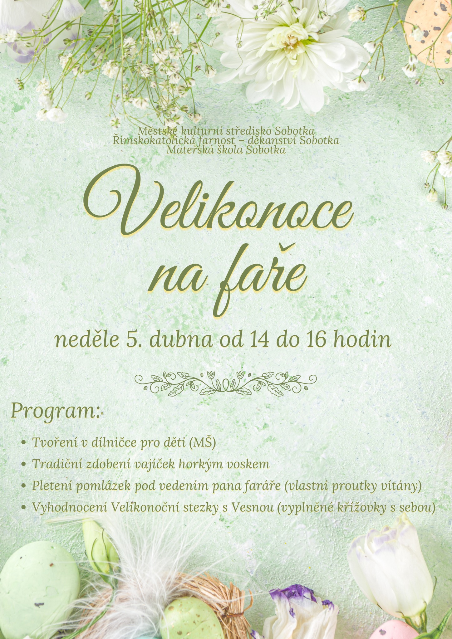 Velikonoční odpoledne s tvořením pro děti i dospělé. Vyzkoušíte si zdobení vajíček voskem, pletení pomlázek a čeká vás také vyhodnocení velikonoční stezky s Vesnou.