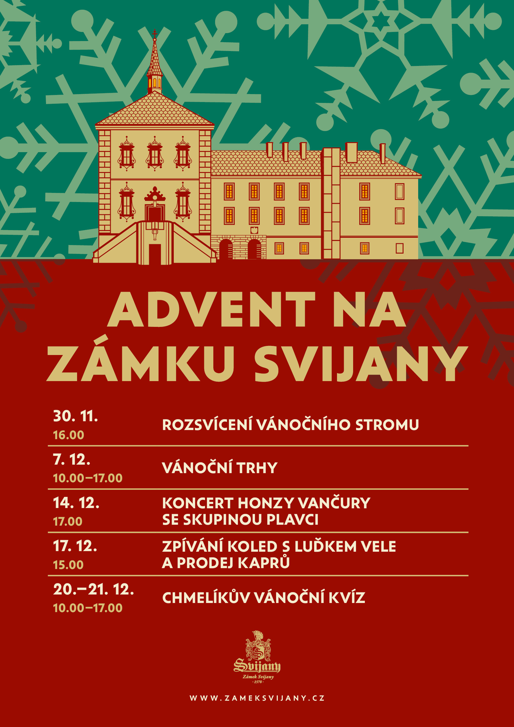 Adventní období přinese i letos na Zámek Svijany bohatou nabídku akcí pro děti i dospělé. Návštěvníci se mohou těšit na rozmanitý program – od rozsvícení vánočního stromku přes tradiční trhy až po koncerty v zámecké kapli.