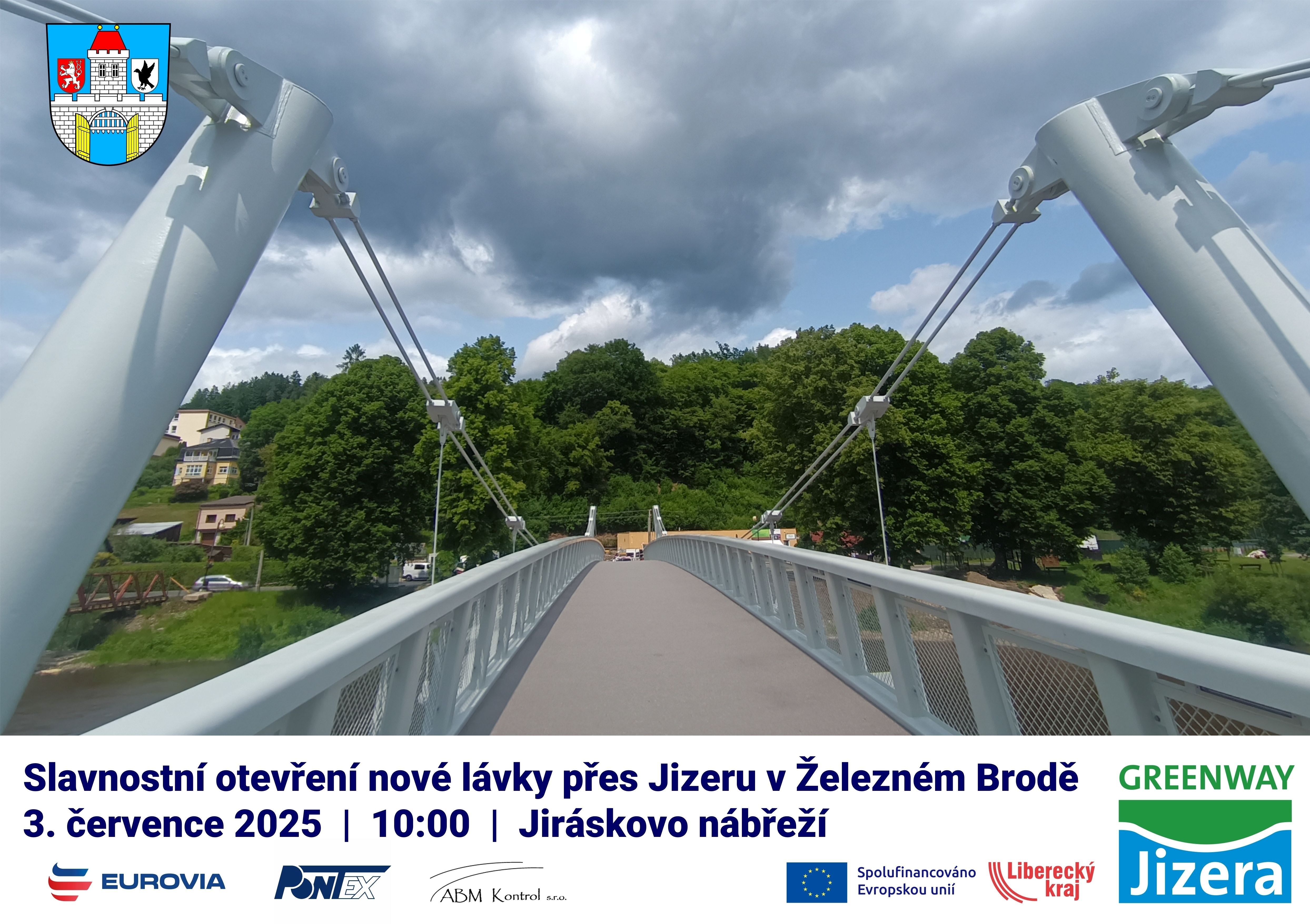 Ve čtvrtek 3. července proběhne slavnostní otevření nové pěší lávky přes řeku Jizeru v Železném Brodě. Nahradí původní konstrukci, která již nevyhovovala technickým požadavkům. Nová lávka zajišťuje bezpečné a pohodlné spojení obou břehů a stává se důležitou součástí městské infrastruktury i cyklostezky Greenway Jizera.
