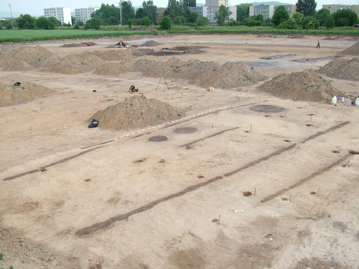 Při archeologickém výzkumu se podařilo objevit zcela novou a unikátní část vesnice z mladší doby kamenné, kterou můžeme datovat do mladšího období tzv. kultury s keramikou vypíchanou. Jedná se o období prvních zemědělců, kteří se v tomto místě usadili v době před téměř sedmi tisíci lety. K největším zdokumentovaným objektům zde patří dvacet pravěkých jam-hliníků elipsovitého tvaru ve třech řadách. Jejich průměr se pohyboval mezi 5 až 10 metry a maximální hloubka dosahovala až dvou metrů. V blízkosti těchto hliníků byly nalezeny různě zachované půdorysy sedmnácti domů o rozměrech 6 × 9 až 8 × 20 metrů v pravidelném uspořádání. Takový nález nemá v Libereckém kraji ani v České republice obdoby. Odkryty byly desítky topenišť, zřícená pec, desítky fragmentů zmetků broušených sekerek či přes 2 000 kusů odpadu, vzniklého při výrobě štípané industrie, často z pazourku. Dále bylo získáno množství brusů a brousků k výrobě nástrojů a dolní i horní kamenné mlýny k výrobě mouky pro zhotovování placek. Plavením vzorků hlíny z pravěkých jam na plavicí lince přes různá síta se podařilo najít dokonce i zuhelnatělé obilky a první hrášek či listy jahodníku.