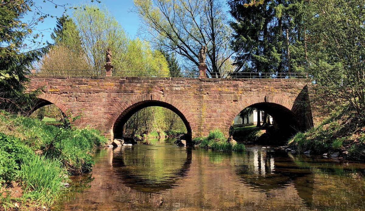 The original Catholic rectory from 1722 was replaced by the current building in 1901. Next to the church staircase stands the building of Libštát's first school from 1781. From there, the road leads across the Oleška via a stone bridge that dates from 1822. It has three regular arches with a span of six metres, a low parapet wall, and connects with a smaller single-arched bridge. The protected monument is adorned with Baroque statues of St. John of Nepomuk and St. Wenceslas from the end of the 18th century.