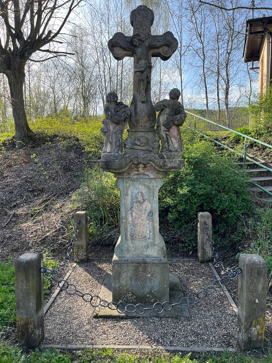 Among Líšný’s most valuable monuments are the sandstone Calvary sculpture group from the early 19th century, located near the train station; the Baroque chapel from 1777 in the Závrší area; and the cast-iron cross mounted on a stone pedestal featuring reliefs of the Virgin Mary, St. Anthony of Padua, and St. Joseph, which was erected in 1842 in the Záblatí area.
