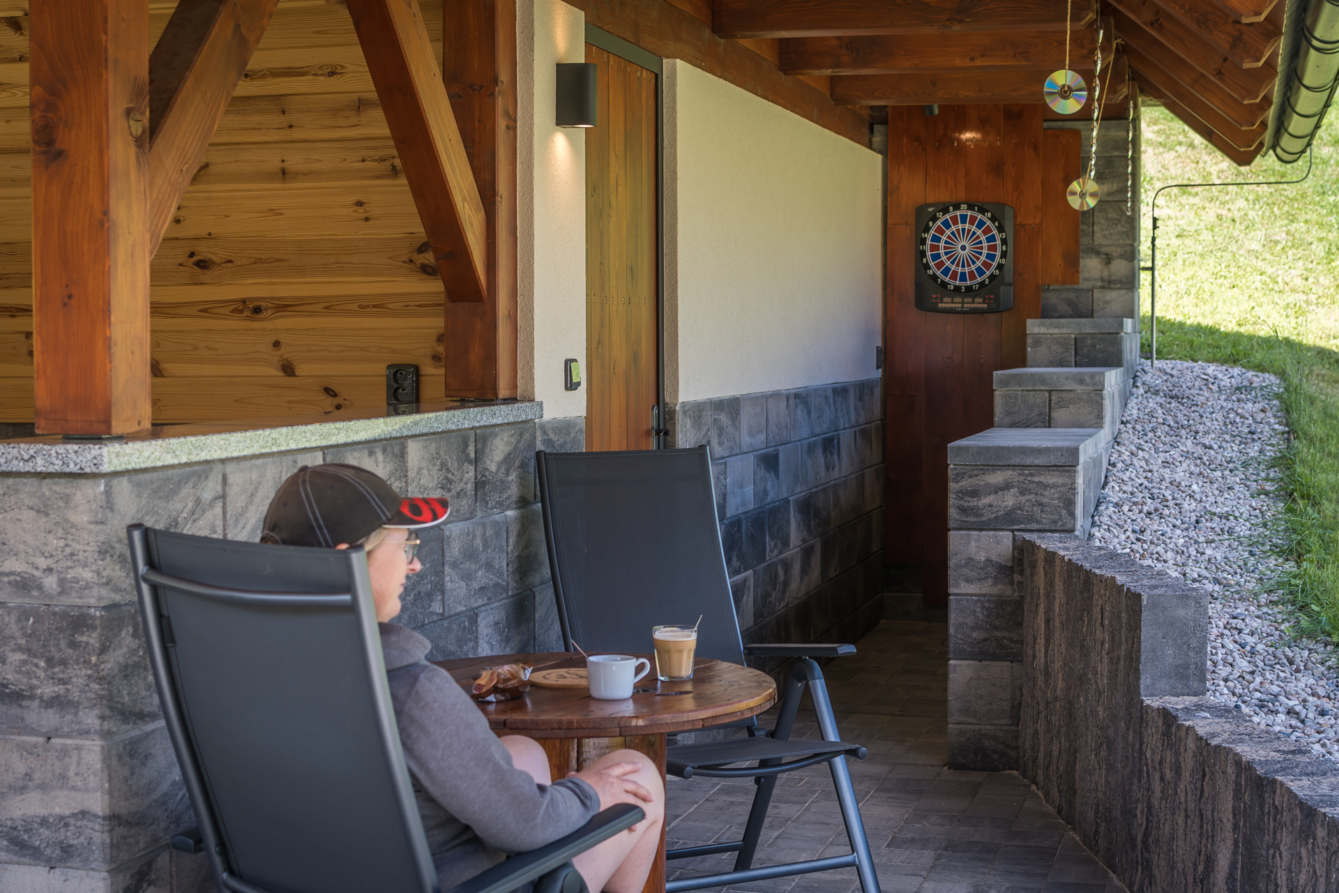 K dispozici je také zahradní altán s grilem ideální pro večerní posezení, kolárna a možnost relaxovat v zahradě na lehátkách . Ke sportovnímu vyžití jsou zde venkovní kryté šipky a hry - petanque, crocket a badminton.