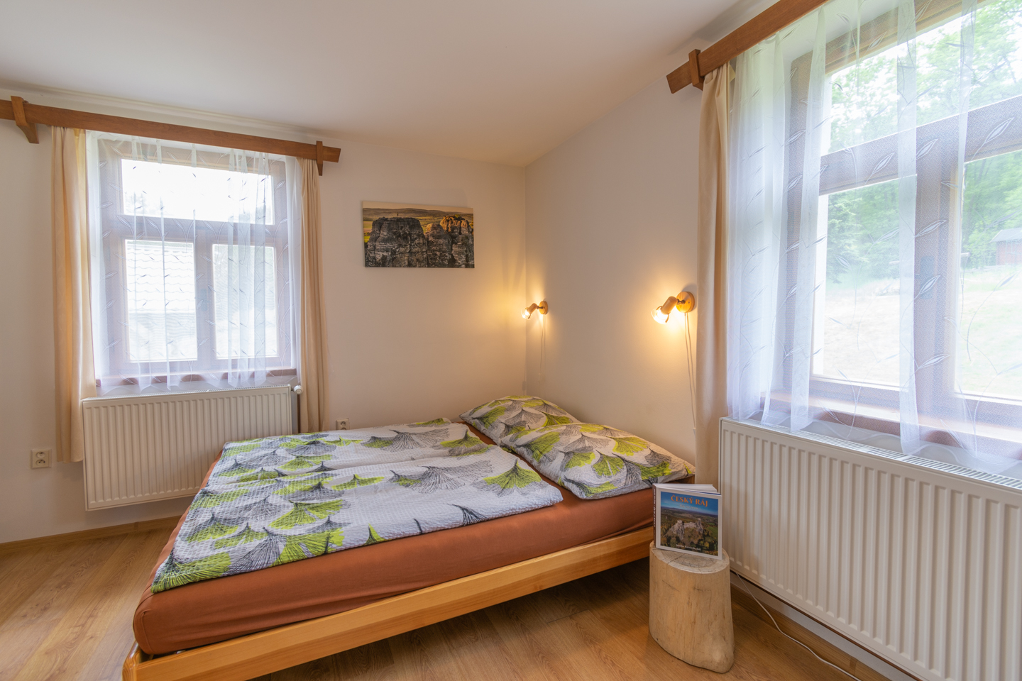 - 2 ložnice: 4 lůžka + dětská postýlka a 2 lůžka + rozkládací futon (140cm)
