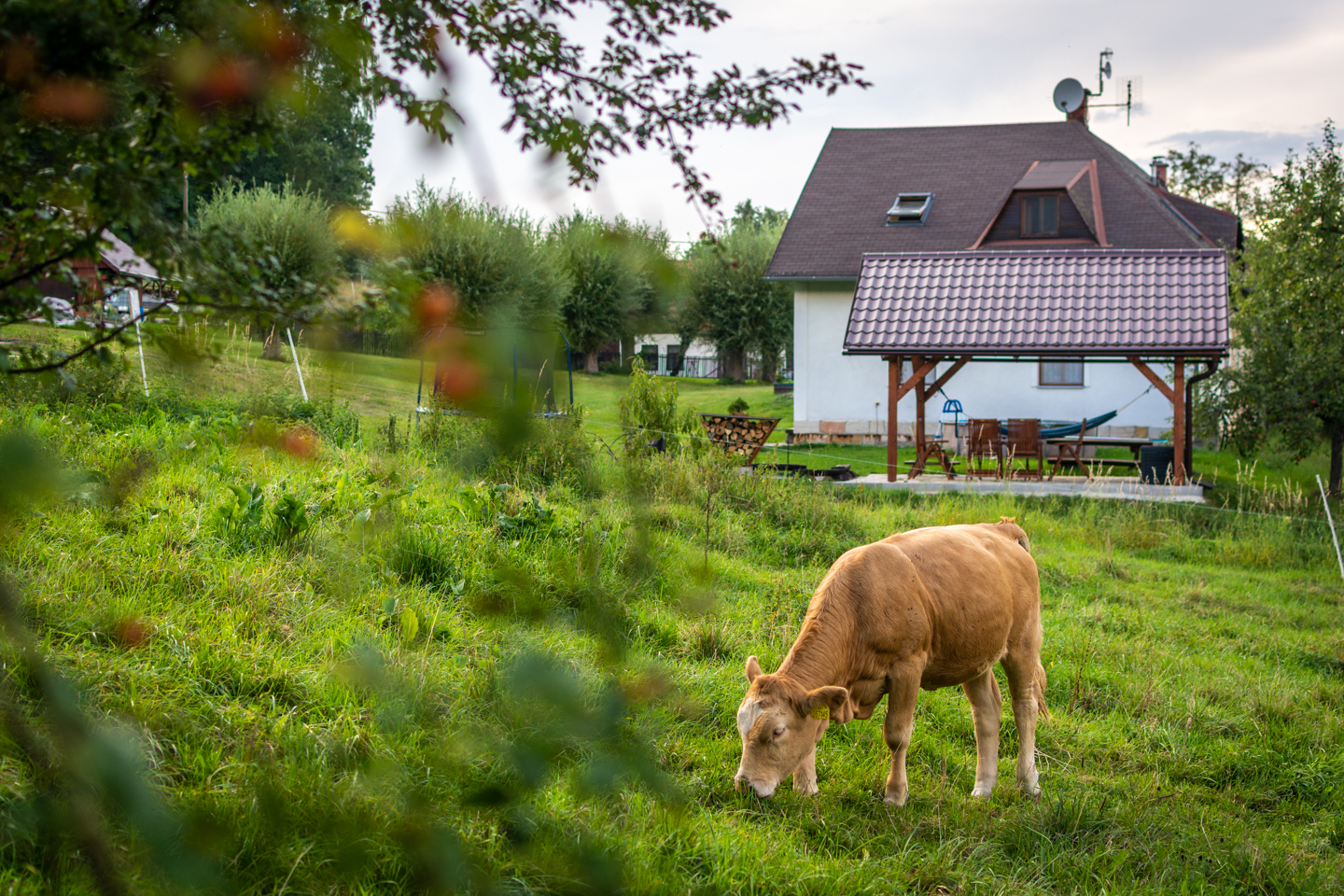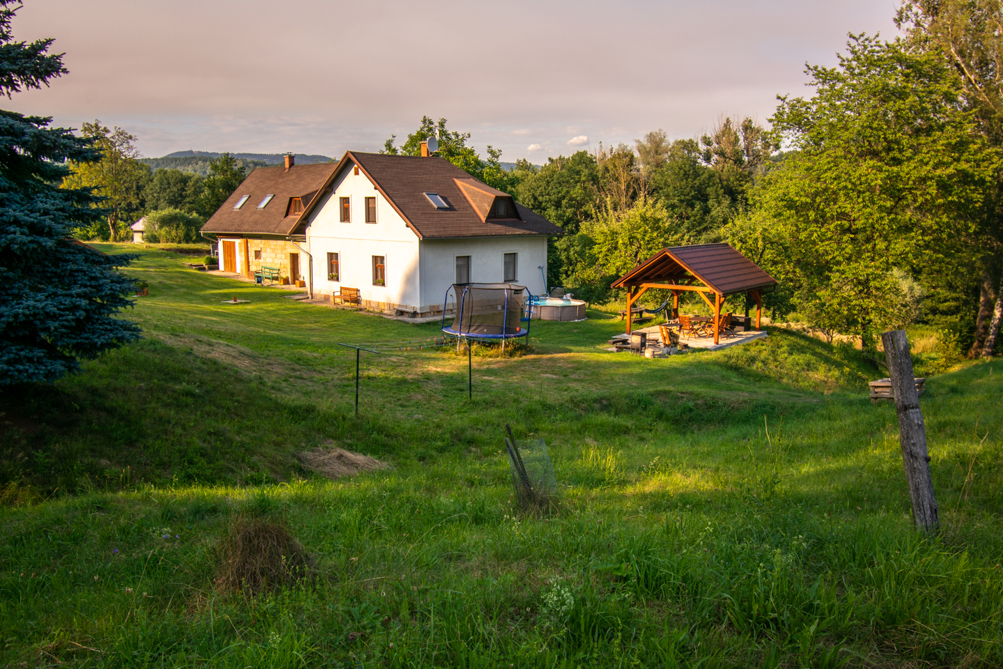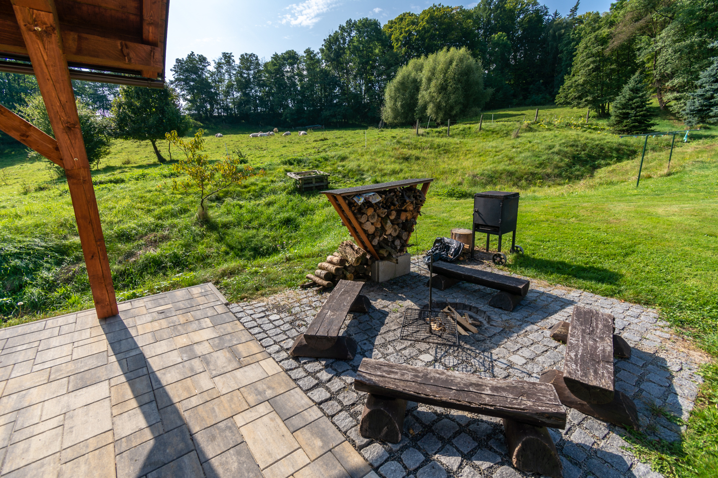 - privátní pergola s posezením, ohništěm a grilem