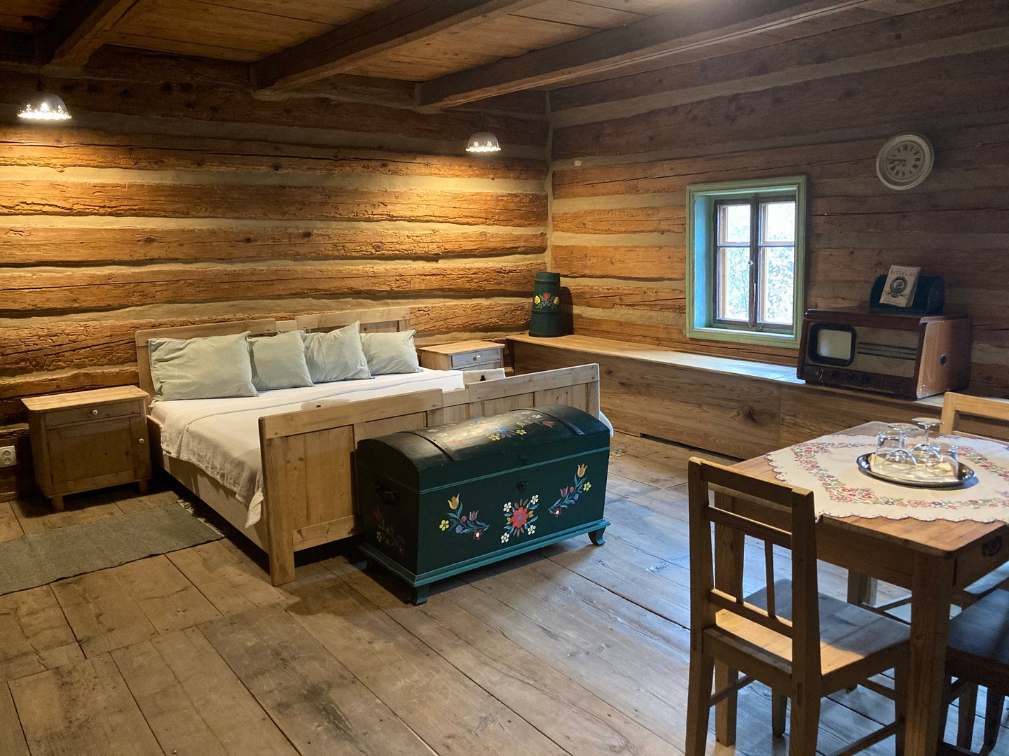 Šest menších pokojů s dřevěným interiérem a dobovými detaily naleznete přímo nad restaurací ve dvou podlažích. Ubytování je vhodné pro páry, rodiny s dětmi a menší skupiny nejen o víkendech. Pobyt ve třech dvoulůžkových pokojích, jednom trojlůžkovém pokoji, jednom čtyřlůžkovém apartmánu a speciálním apartmánu pro dvě až tři osoby (původní roubené místnosti z 16. století).